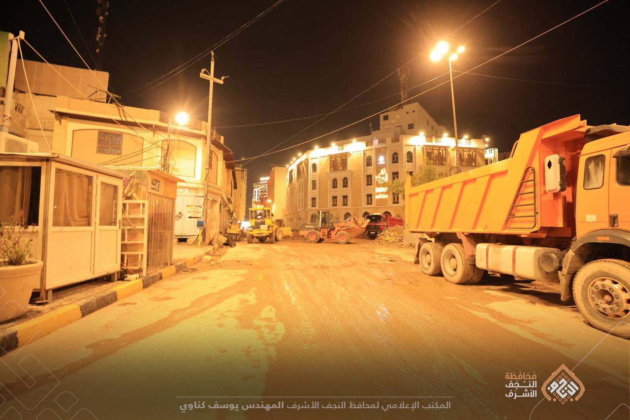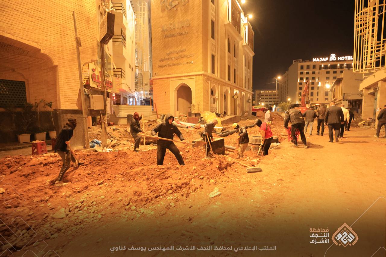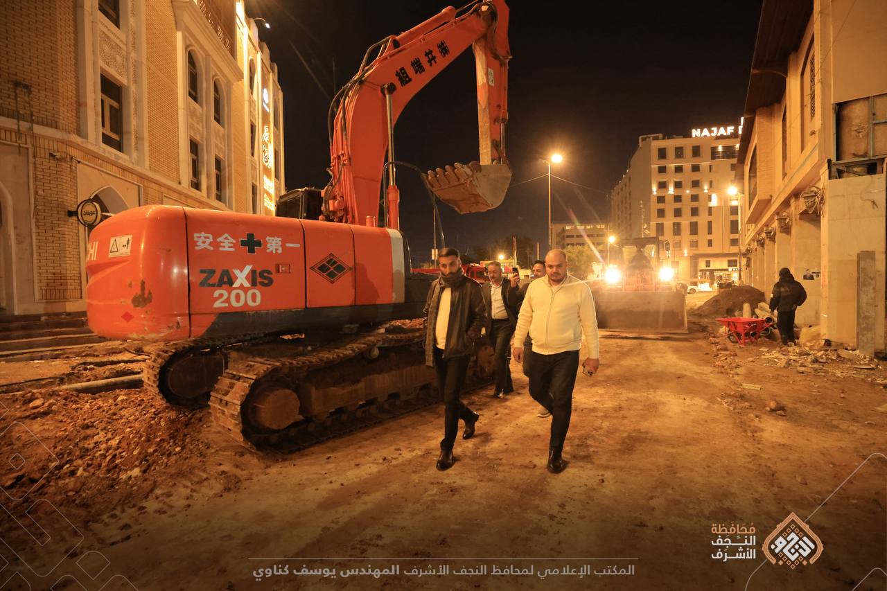 بعد منتصف الليل ومن المدينة القديمة.. محافظ النجف الأشرف يتابع الأعمال الجارية في شارع زين العابدين ويؤكد على إكمالها ضمن المدة الزمنية المحددة